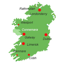 Die Region Connemara erstreckt sich vom Lough Corrib und Joyce Country im Osten bis zum Atlantik im Westen.