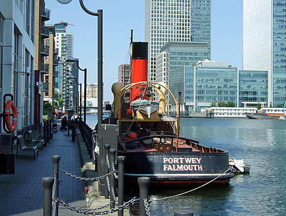überquert man zunächst das North Dock über die von den genannten Restaurants nur wenige Meter entfernte